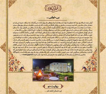 قصههای هتل بزرگ گاجرهAdmin1403-12-05بی خوابی . . . آرش چند شبانه روز بود که نخوابیده بود. شبها را با چشمهای باز روی تخت ... ادامه مطلب